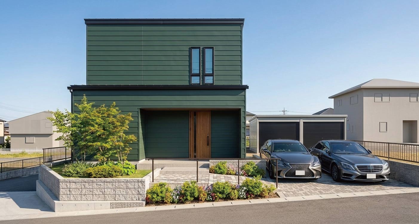 落ち着いたグリーンの外観は、周囲の景色に自然と馴染みながらも、さりげない個性を演出。